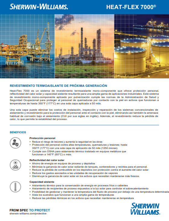 - Protección personal contra altas temperaturas, quemaduras y lesiones: hasta 177 °C con una sola aplicación de revestimiento de 1250 micrones.