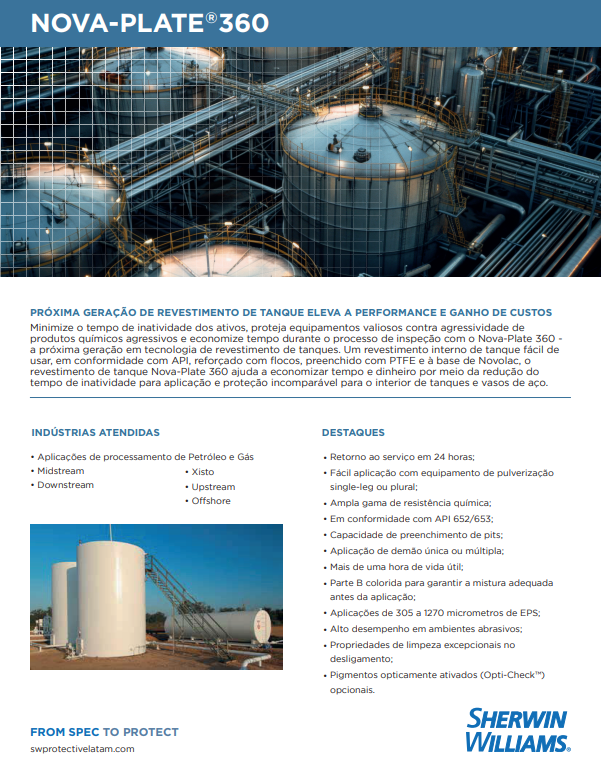 - Aplicações em vários segmentos de mercado que exigem resistência química superior e resistência à abrasão